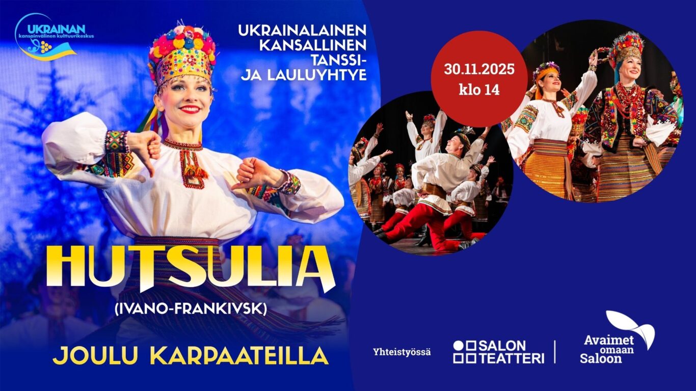 Kansallinen laulu- ja tanssiyhtye Hutsulia, on Ukrainan vanhimpia ja arvostetuimpia ammattimaisia folk-yhtyeitä. Yhtye on esiintynyt yli 12 000 konsertissa ympäri maailmaa ja ihastuttanut yleisöjä Kanadasta Italiaan ja Saksasta Kreikkaan saakka.