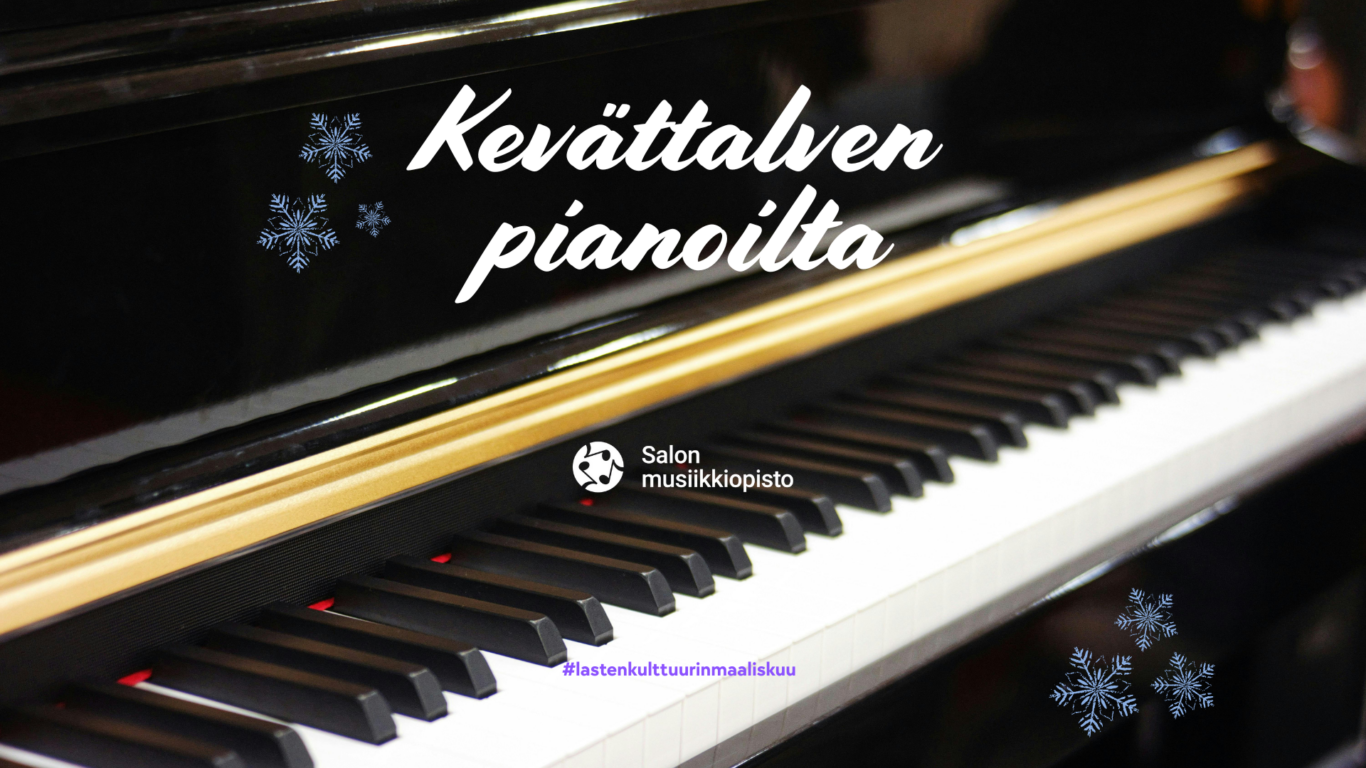 Tervetuloa kuuntelemaan kevättalven pianoiltaa! Leena Tammiston pianoluokan konsertissa soivat veikeät, kaihoisat ja pirteät sävelet. Konserttiin on vapaa pääsy ja se on osa Salon kaupungin Lastenkulttuurin maaliskuu -tapahtumakuukauden ohjelmaa.