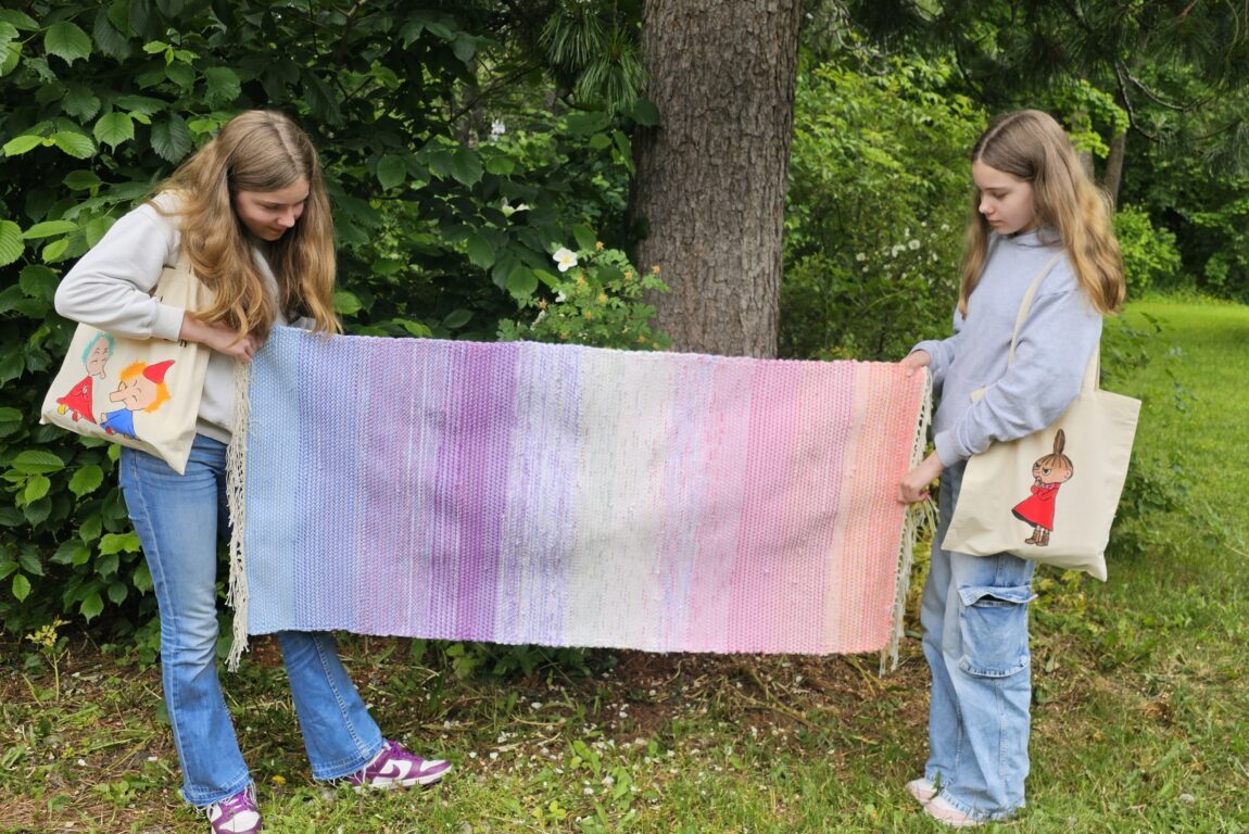 Leirillä suunnitellaan ihan ikioma räsymatto, joka kudotaan oikeilla kangaspuilla! Leirin päätteeksi kainalossa on oma rakas mattokäärö ja takataskussa hauskoja muistoja käsintehdystä viikosta.