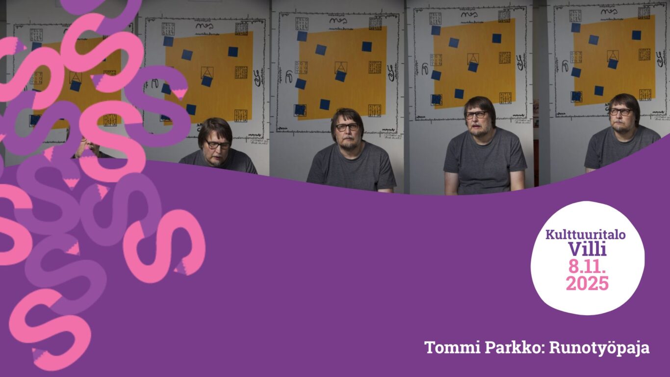 Pajassa leikitellään runokuvilla, etsitään tuoreita ilmaisuja ja harjoitellaan kielen kuvallisuutta. Sopii kaikille, jotka haluavat syventää runollista ilmaisuaan ja ravistella kielen rutiineja. Ohjaajana Tommi Parkko, paikkana Kulttuuritalo Villi, Vähäsillankatu 9.