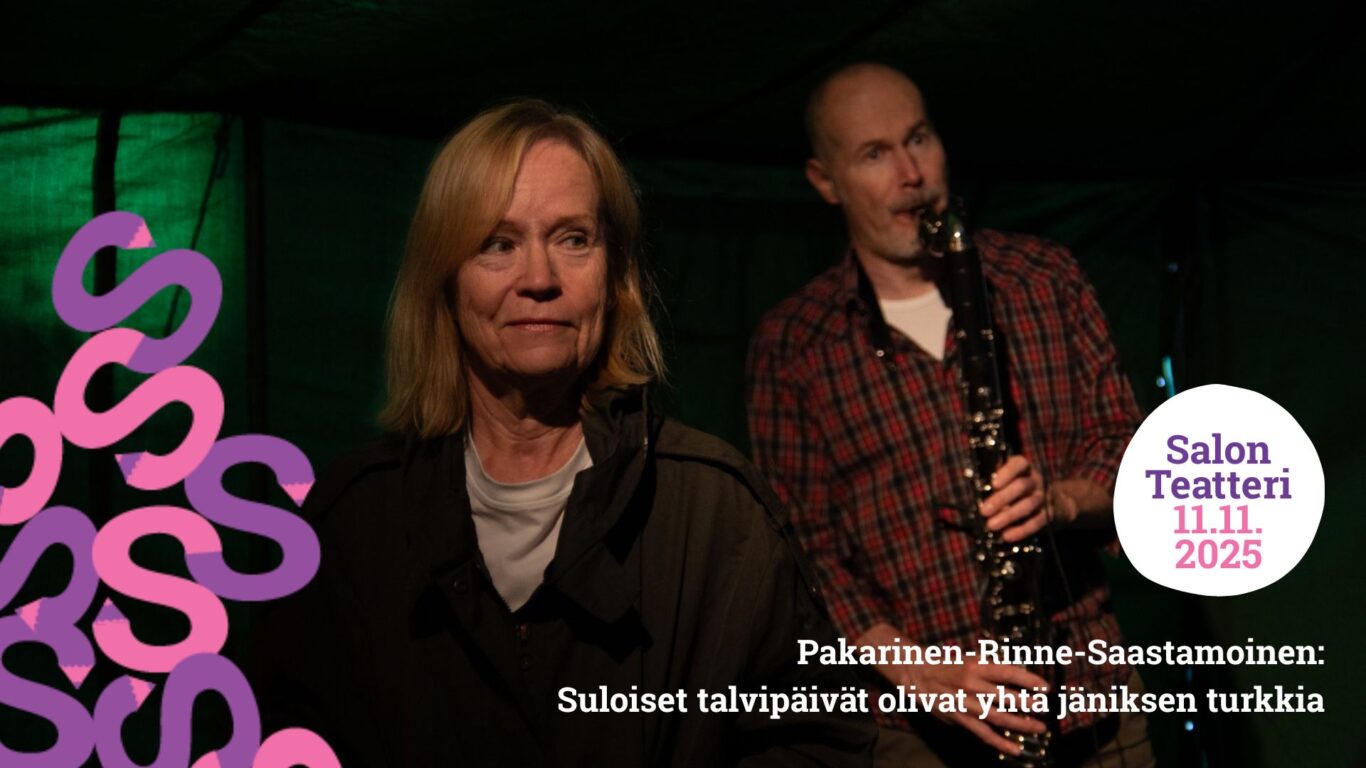 Klo 18 Suloiset talvipäivät olivat yhtä jäniksen turkkia: Näyttelijä Kaija Pakarisen, muusikko Tapani Rinteen ja ohjaaja Riku Saastamoisen esitys perustuu Sirkka Turkan runoihin. Lavarunoutta, ambientjazzia ja teatteria yhdistelevässä esityksessä henkilö etsiskelee muuatta mielipuolista toccataa, muistelee kouluaikoja lehmuksen latvassa, seuraa Hamletin kasvatusta, pureskelee tulitikkujen syttypäitä, vaipuu unohdukseen ja sen alapuolellekin. Esitys Salon Teatterilla, os. Turuntie 5.